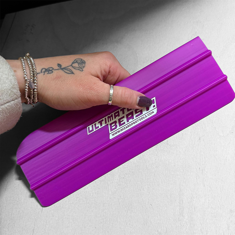 Ultimate BEAST er det kraftigste verktøyet i Wizard Pro Tools-serien – en 240 mm bred squeegee designet for å håndtere store arkitektoniske veggpaneler i vinyl, intrikate tapeter og presis påføring av applikasjonstape for utskårne grafikker. Med sin økte størrelse tar denne squeegeen produktivitet og effektivitet til et helt nytt nivå, og gjør installasjonsprosessen jevnere og mer strømlinjeformet.